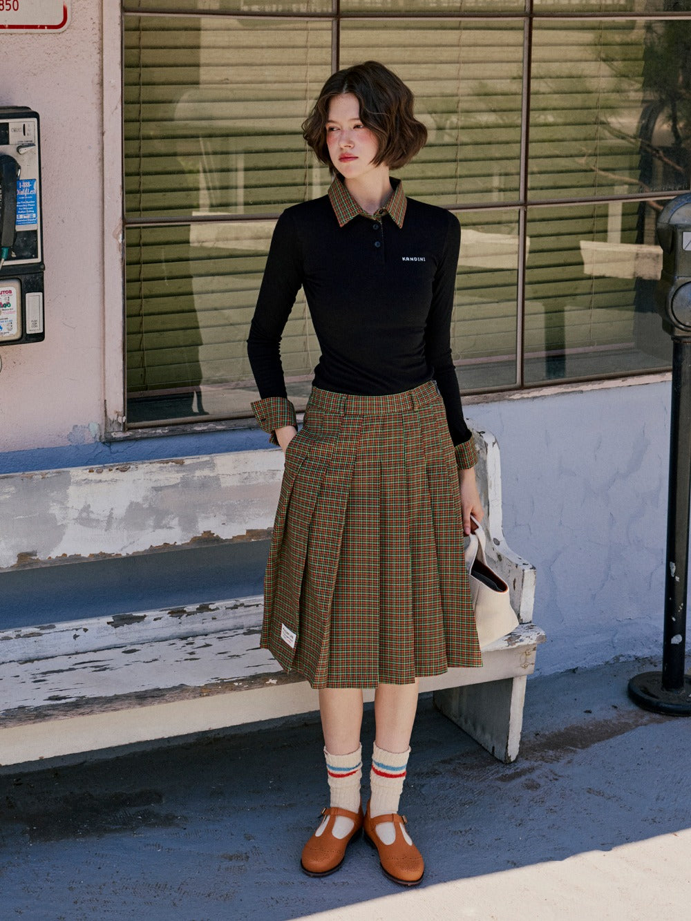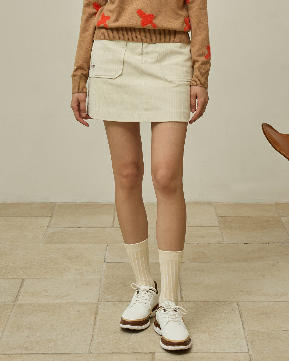 - 両サイドにカーゴアウトポケットが付いているワイドプリーツスカートです。