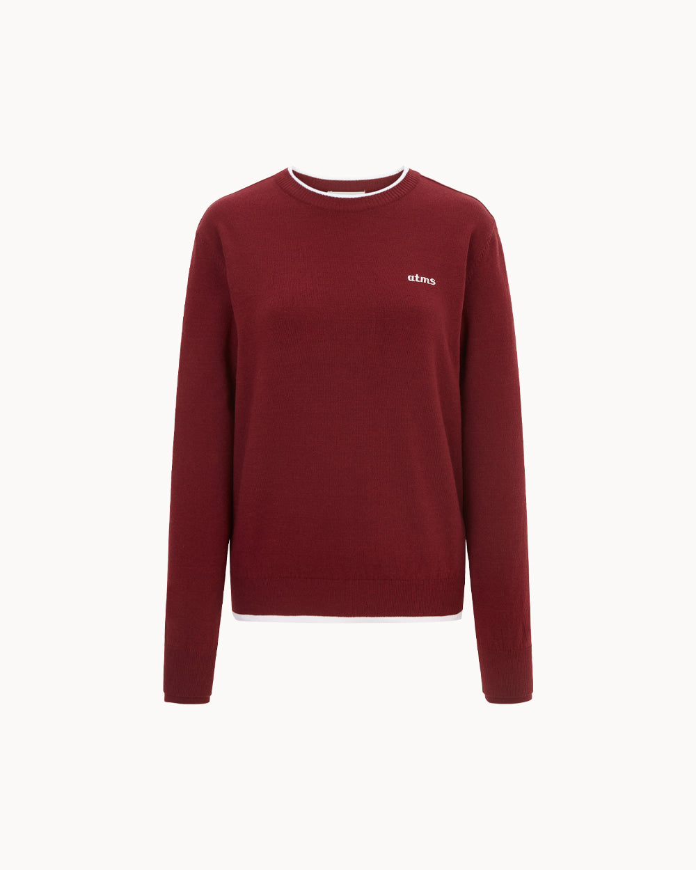 ダブルスリーブ ラウンドネックニット(ピンク)