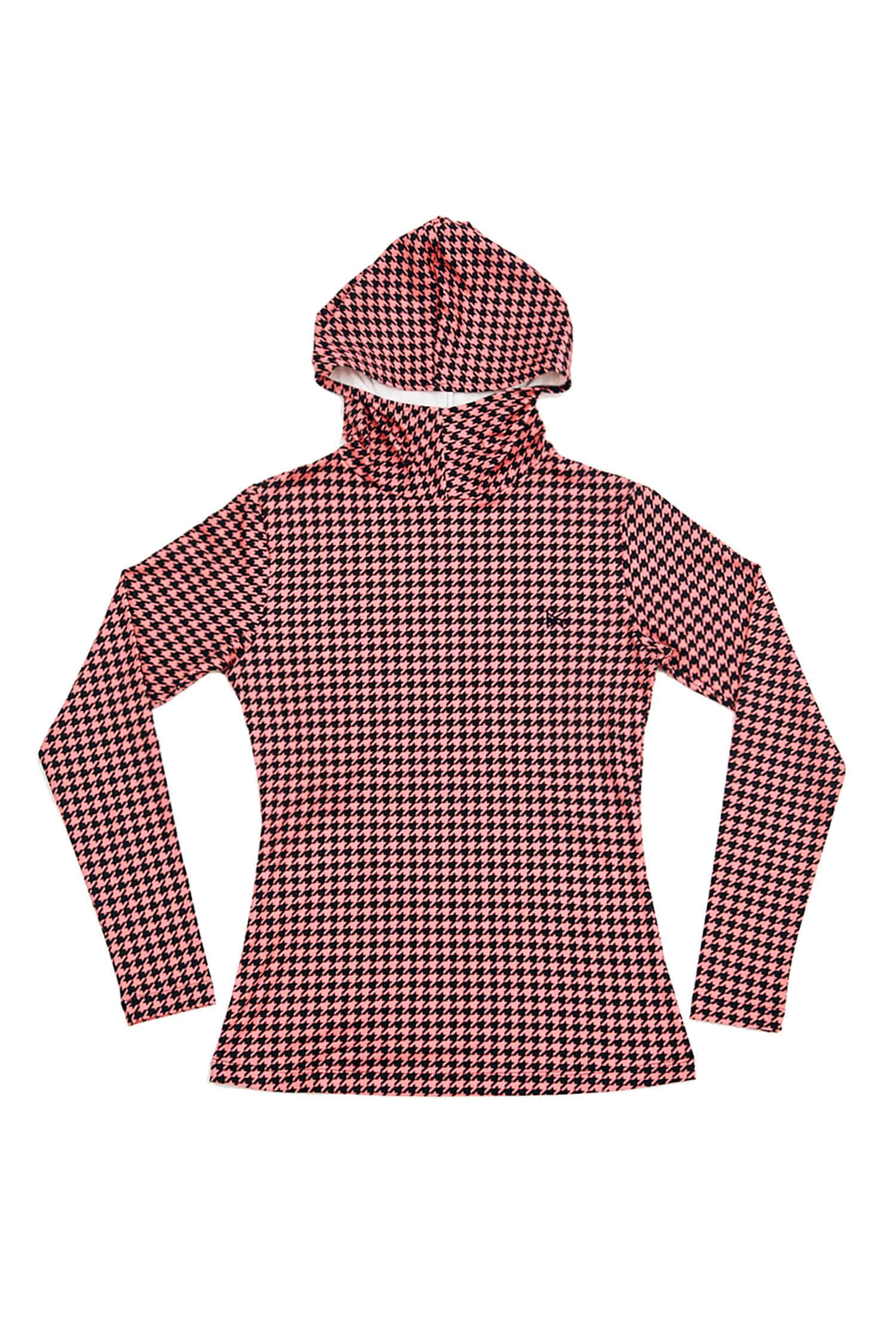 フード付き 長袖モックネックシャツ(千鳥格子)