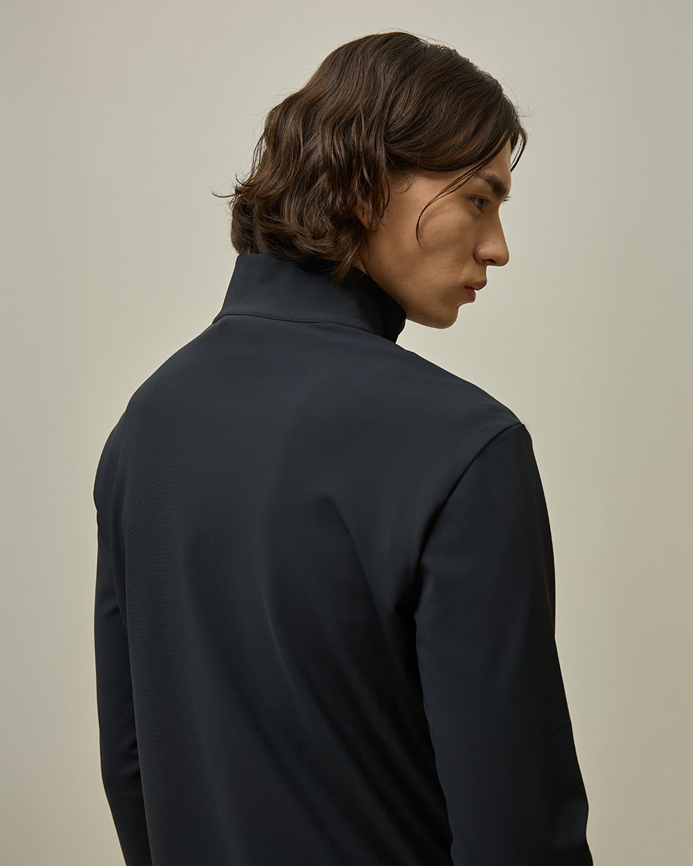 ストレッチ性と保温性に優れ、上品な光沢のある素材がカジュアル過ぎない洗練された印象を演出します。