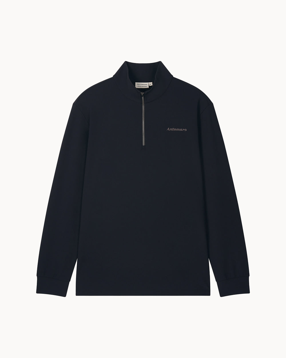 袖口の配色カラーと背中のスペースシップロゴがアクセントになった、ソフト起毛のハーフジップアップトップです。