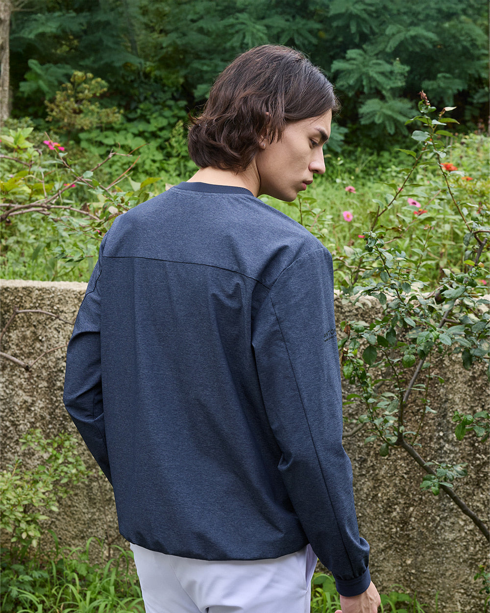 - スポーティーなムードが魅力の、テックデニムライク素材を使用したプルオーバーです。デニムのような表情を持ちながらも、軽やかで機能性に優れた素材感で、洗練されたカジュアルスタイルを演出します。