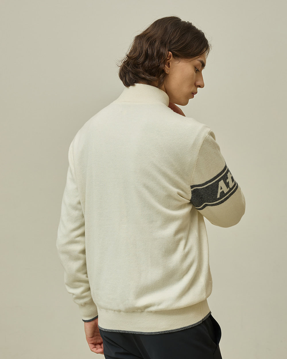 (メンズ)防風ジップアップ カーディガン(アイボリー)