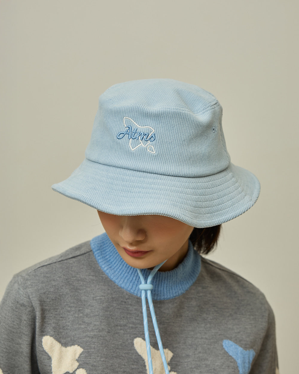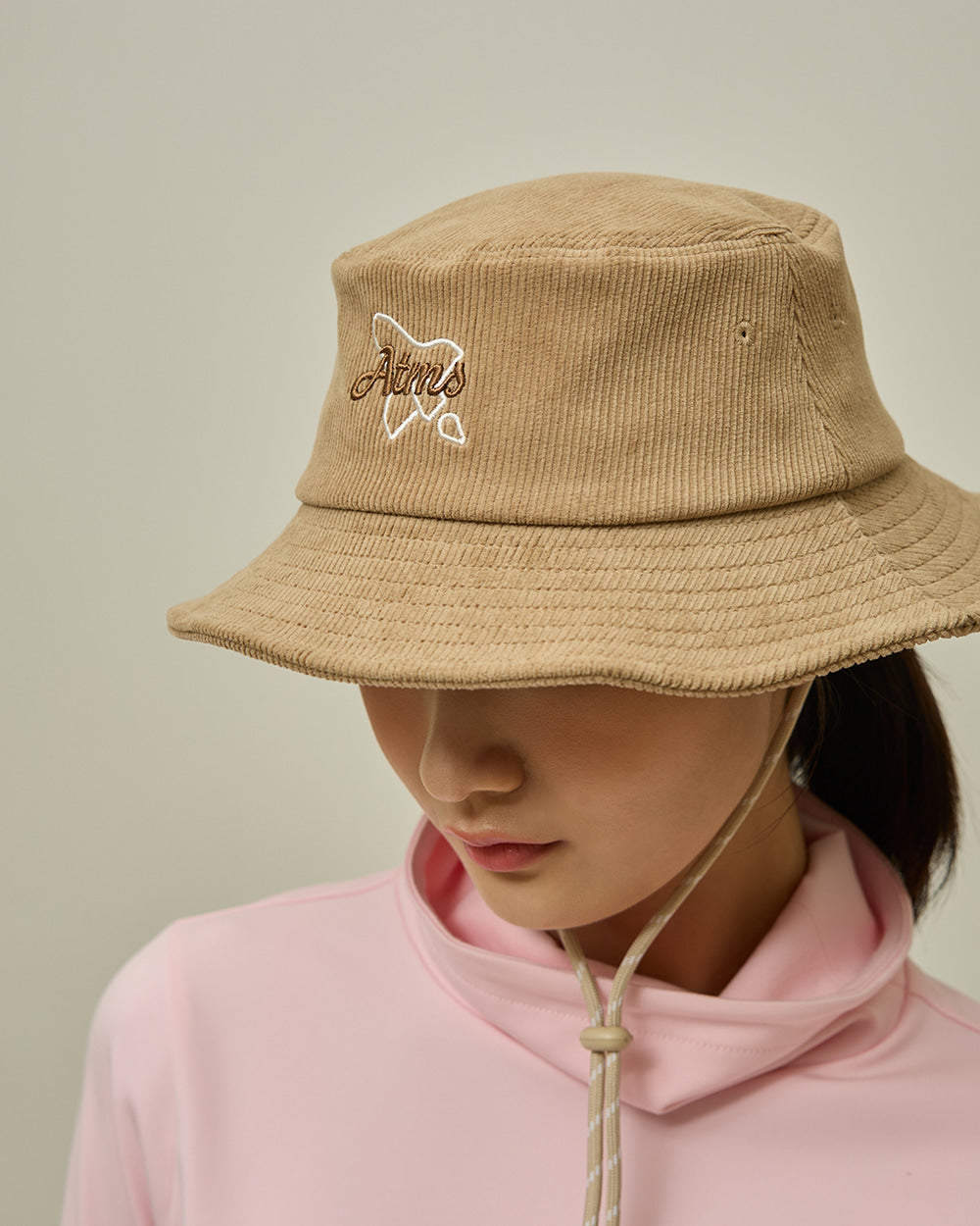 ANTOMARSのロゴ刺繍入りのソフトなパステルカラーが魅力のコーデュロイ バケットハットです。