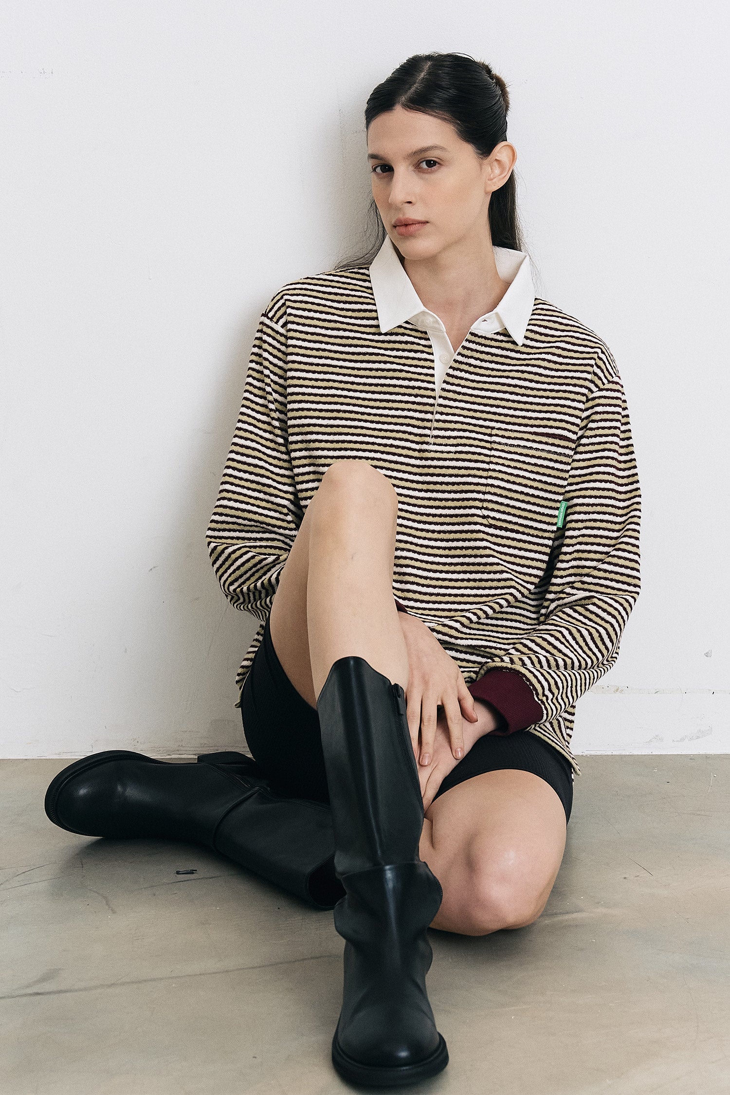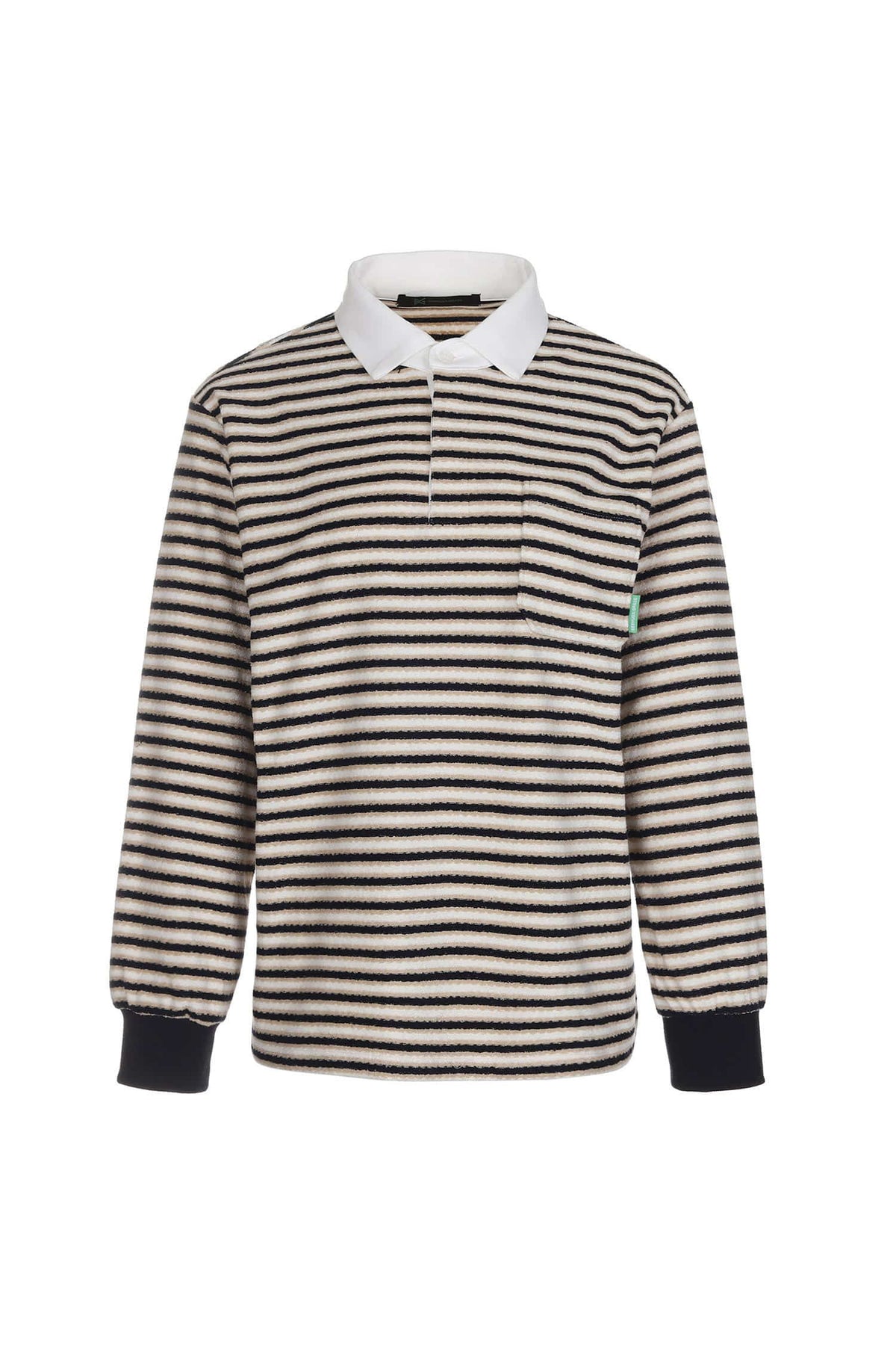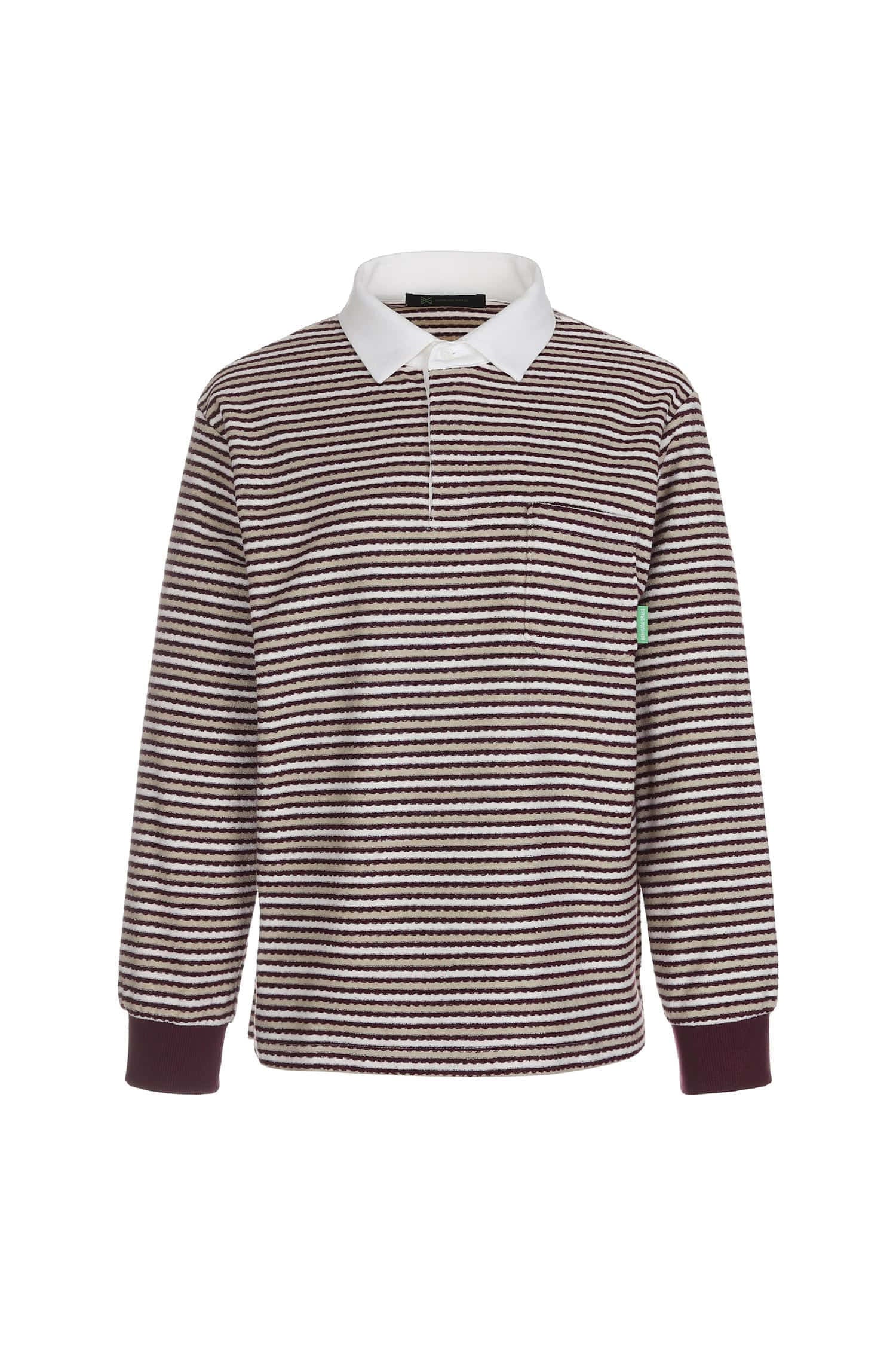 リラックス感のあるオーバーフィットシルエットが特徴の、マルチストライプ柄長袖テリーシャツです。