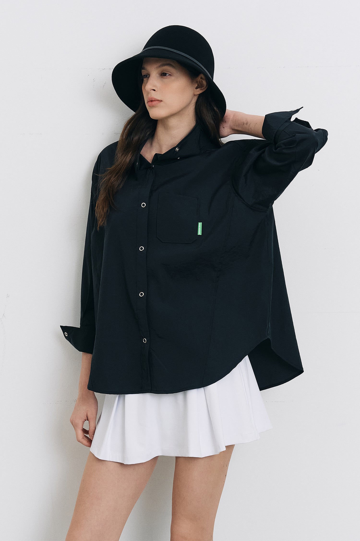バックスリット ウィンドブレーカーシャツ(ブラック)