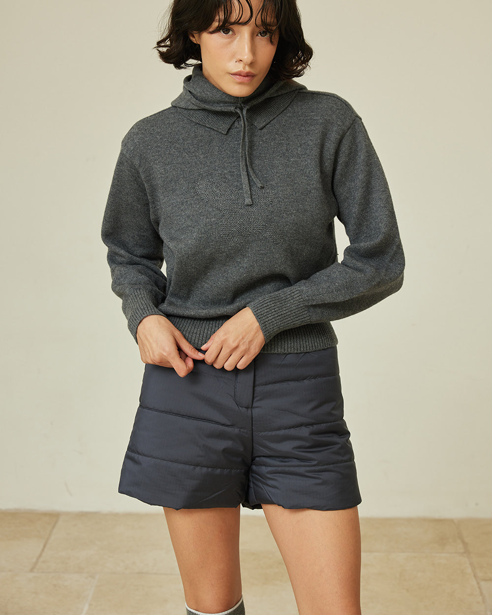 同シリーズの「ショートスリーブ グースダウンアウター」とセットで着用すると、より洗練されたイメージで楽しめます。