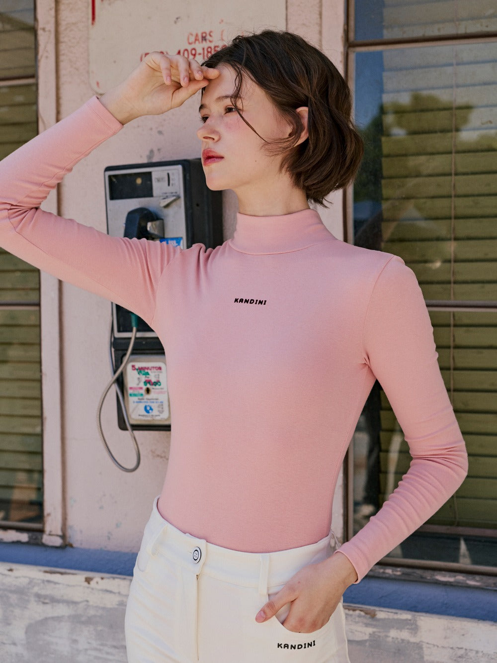 モックネック長袖シャツ(ピンク)