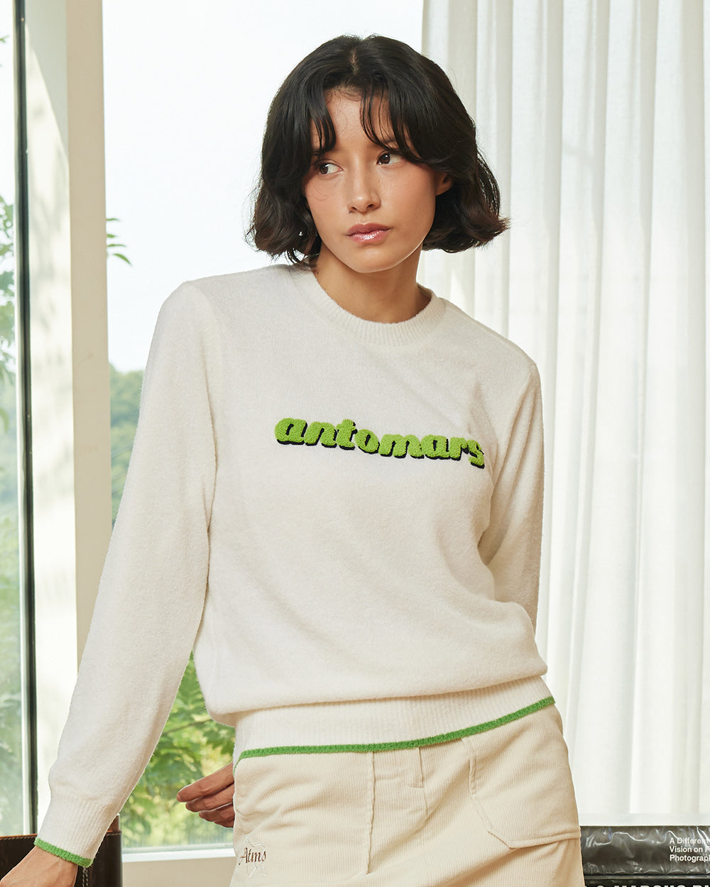 ANTOMARS ロゴポイント ブークレ防風ニット(アイボリー)