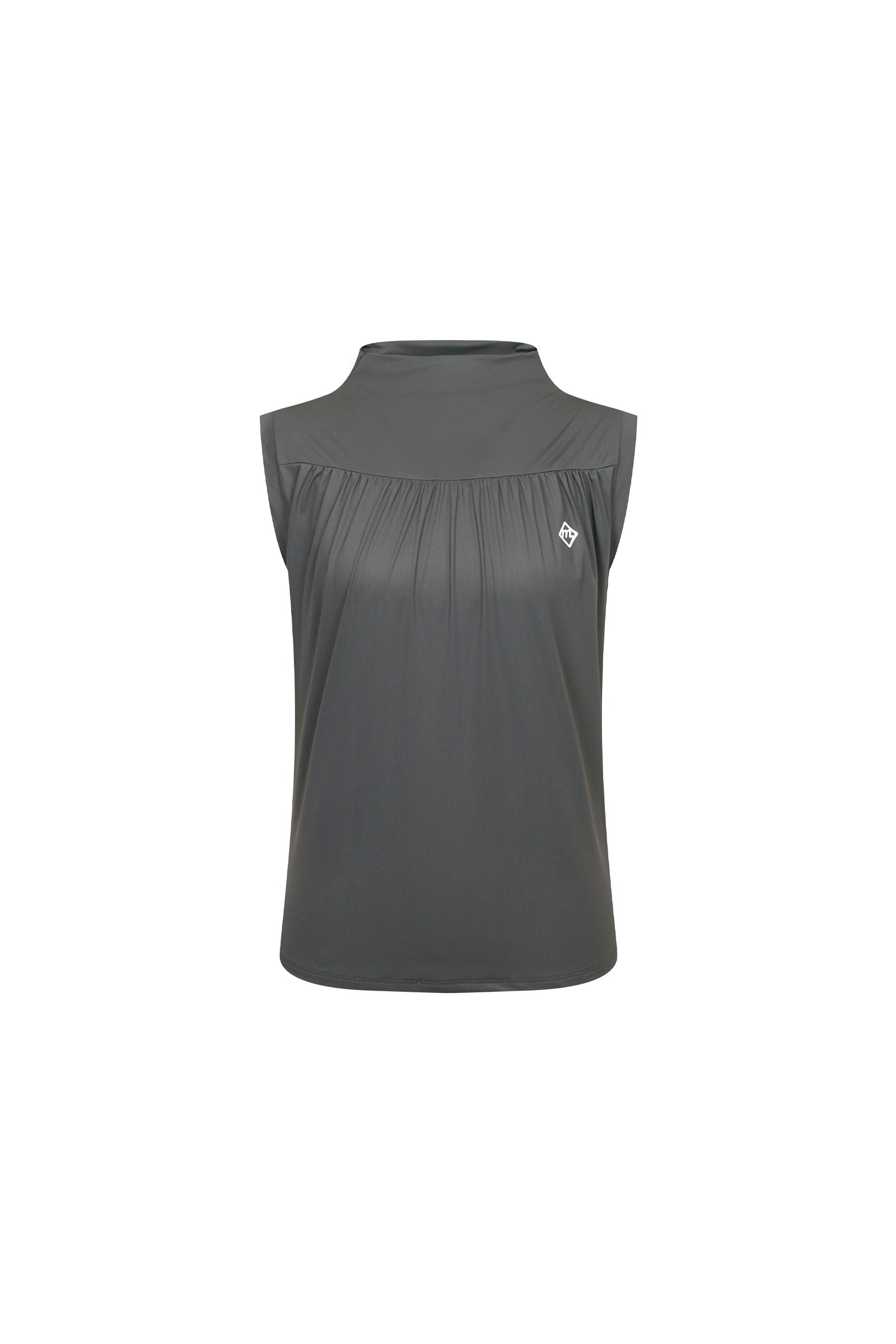 フロントにはシャーリングディテールを施し、身体のラインが出すぎないよう配慮。