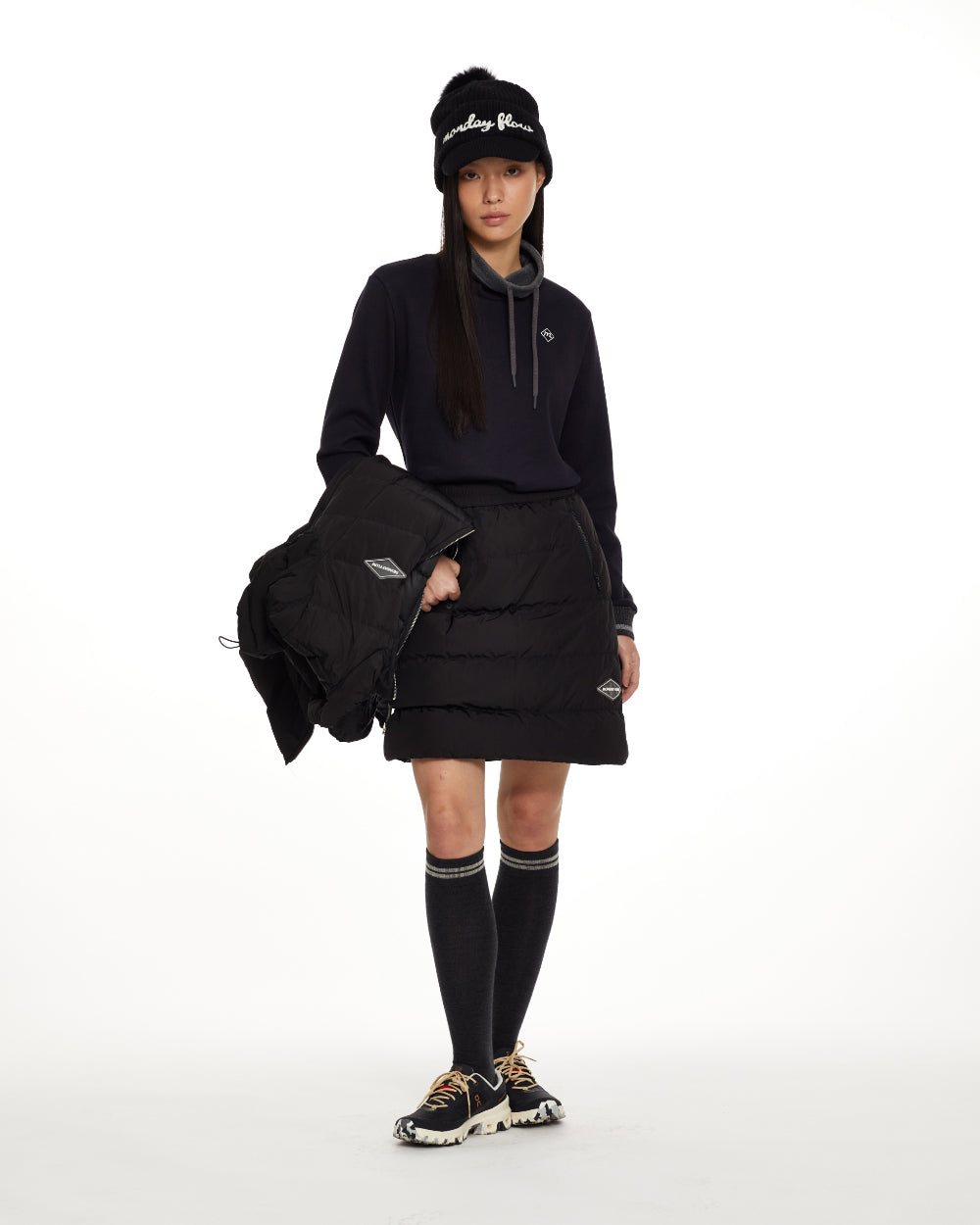 一枚で存在感のあるパディングキルティングスカートは、シンプルなトップスと合わせるだけで完成度の高い冬のゴルフスタイルに。
