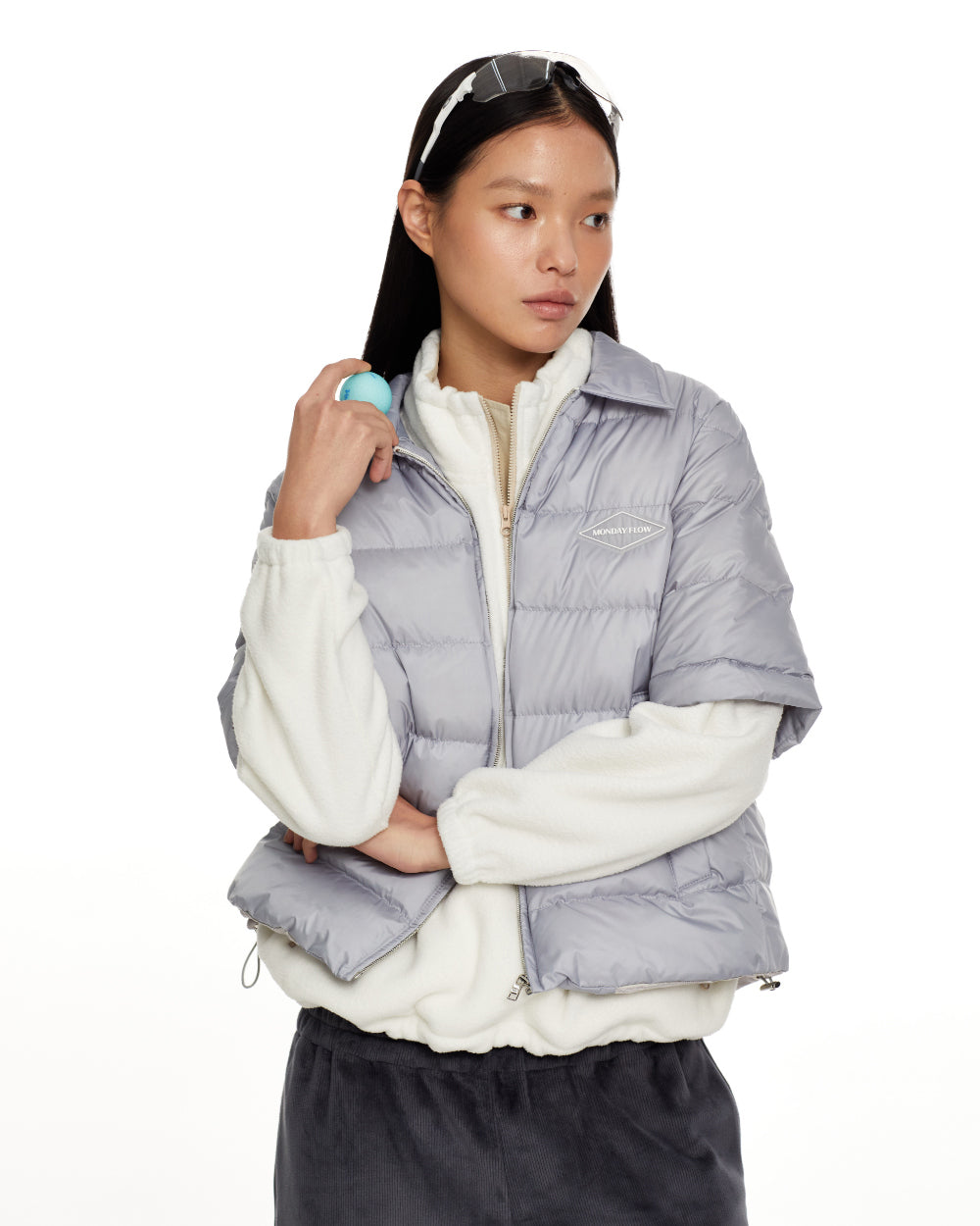 最上級のハンガリーグースダウンを使用した、軽くて暖かい半袖ダウンジャケットです。