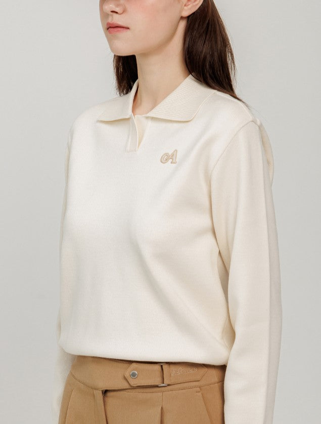 - 軽くて柔らかい肌触りのオープンカラーニットです。