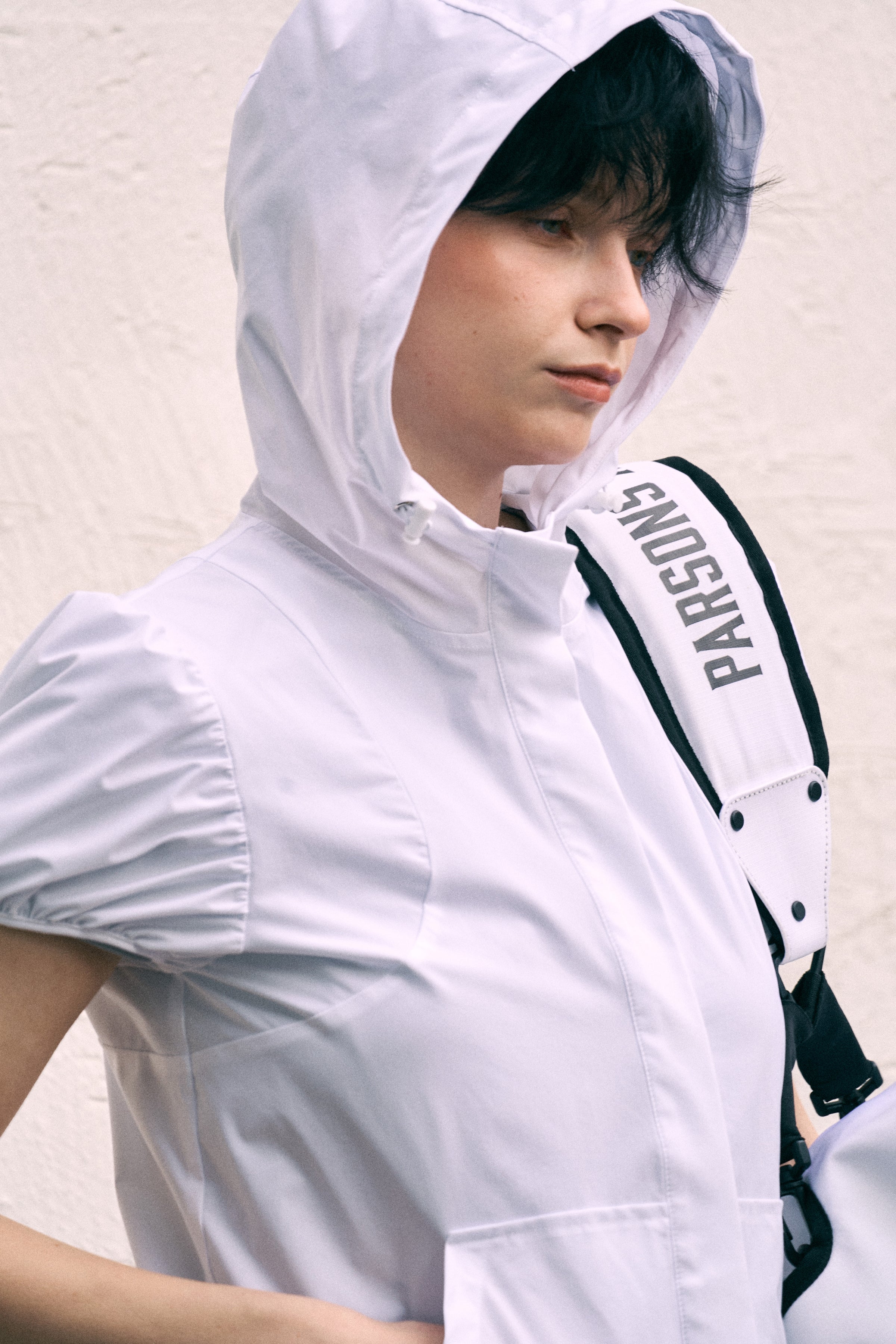 生活防水に対応した撥水機能素材を使用し、急な小雨や風にも安心して着用できます。