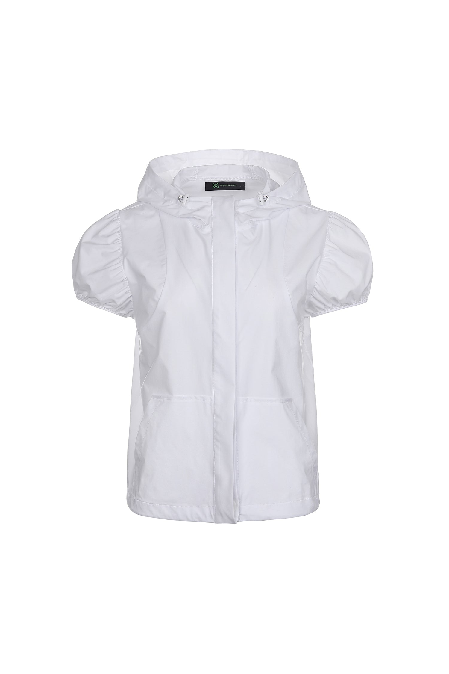 軽量でさらっと羽織れる、フード付き半袖タイプのウィンドブレーカージャンパーです。