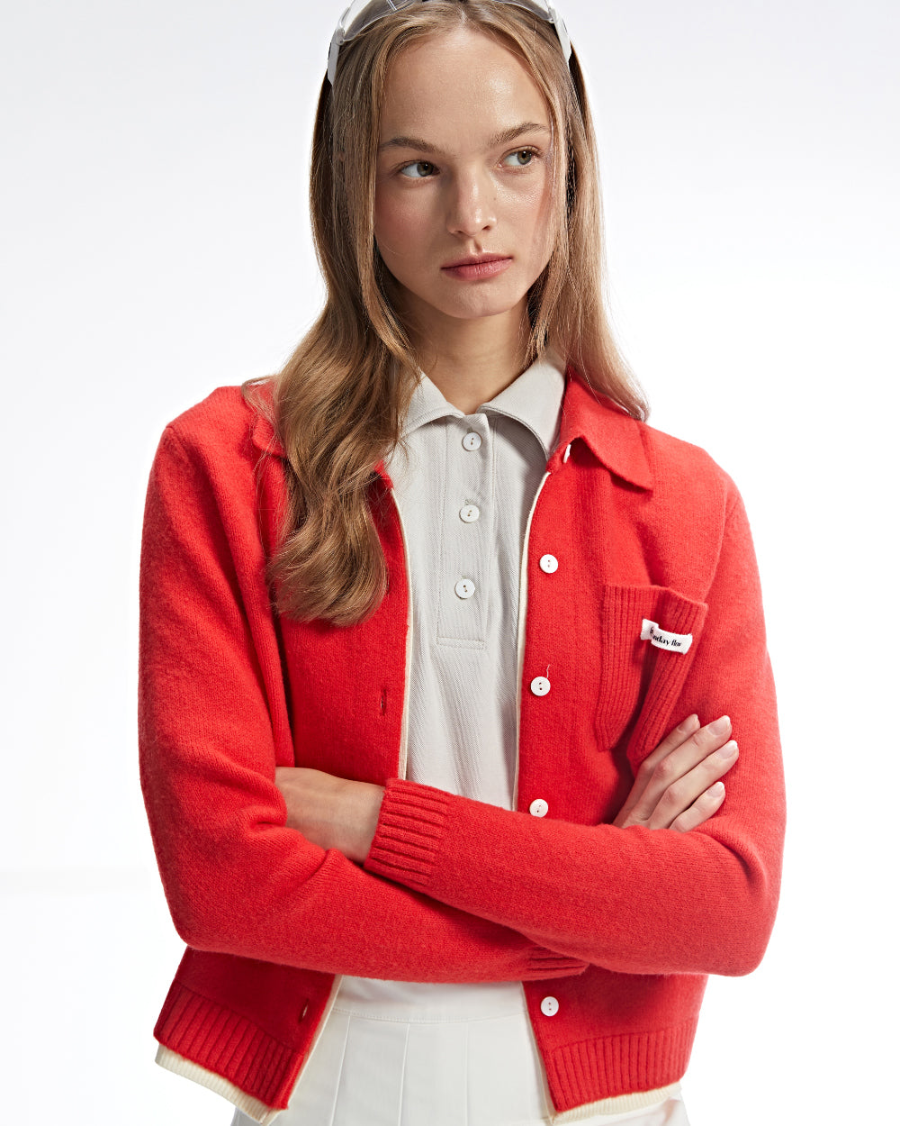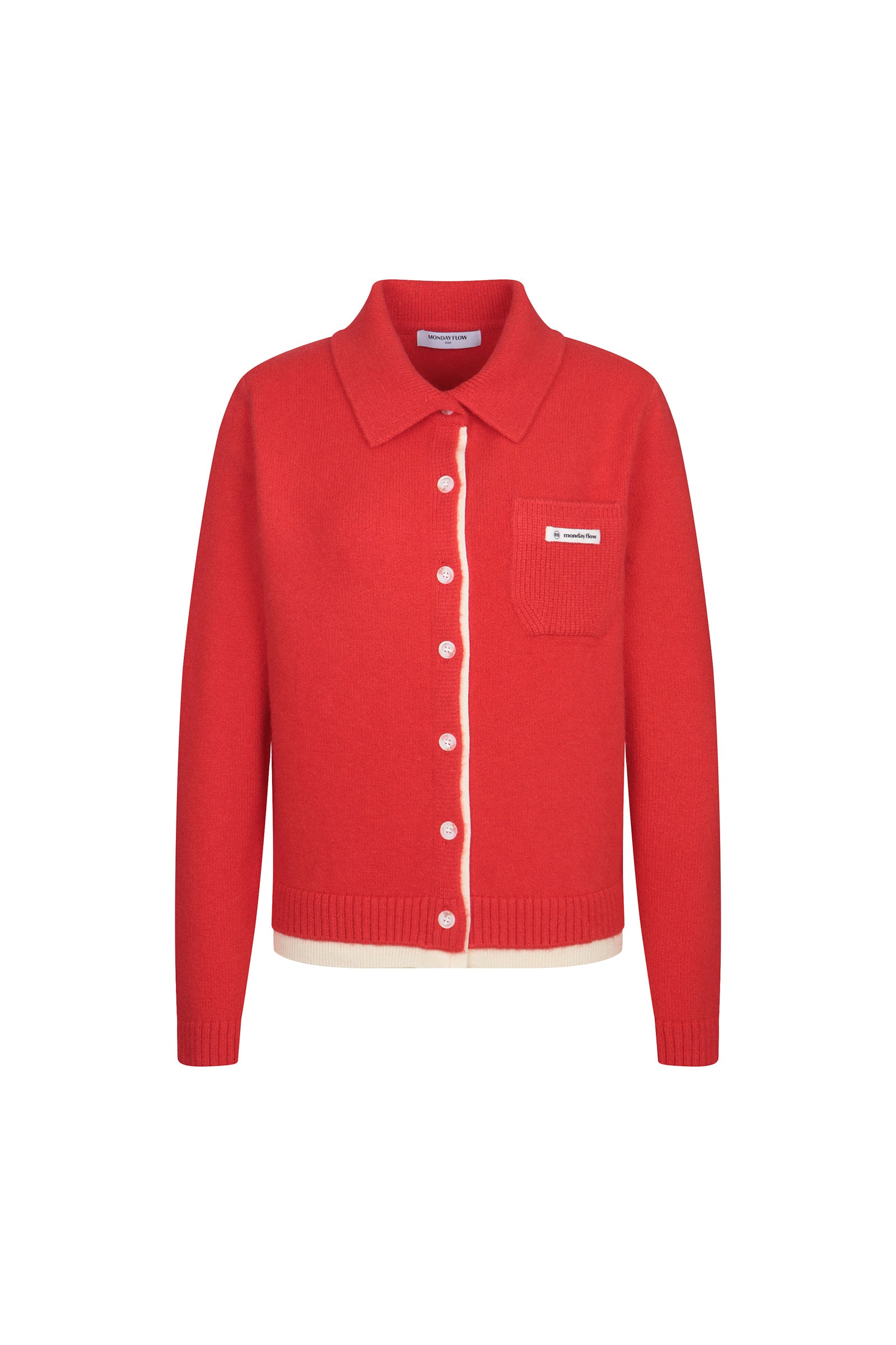 目を引く美しいカラーと、なめらかな肌触り、程よくしっかりとした厚みが魅力のニットカーディガンです。