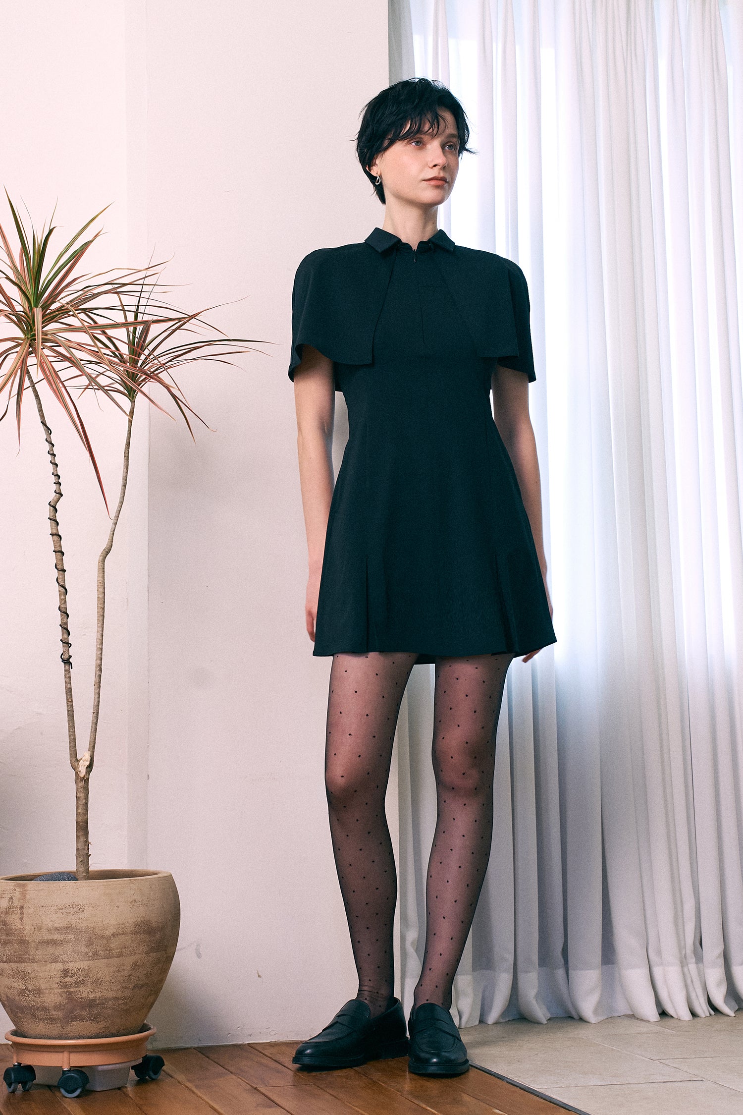 着脱ケープ付き スリーブレス ワンピース(ブラック)