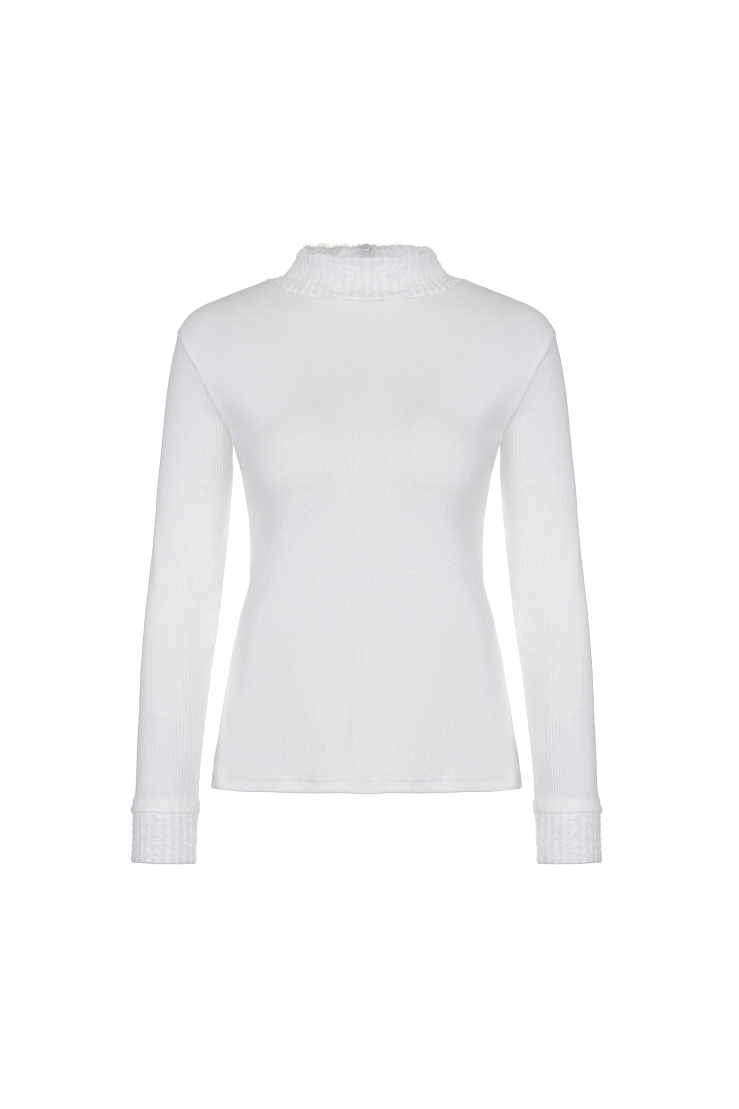 伸縮性に優れたニット素材は、暖かさと快適な着心地を両立し、長めの袖丈で保温性も高めています。